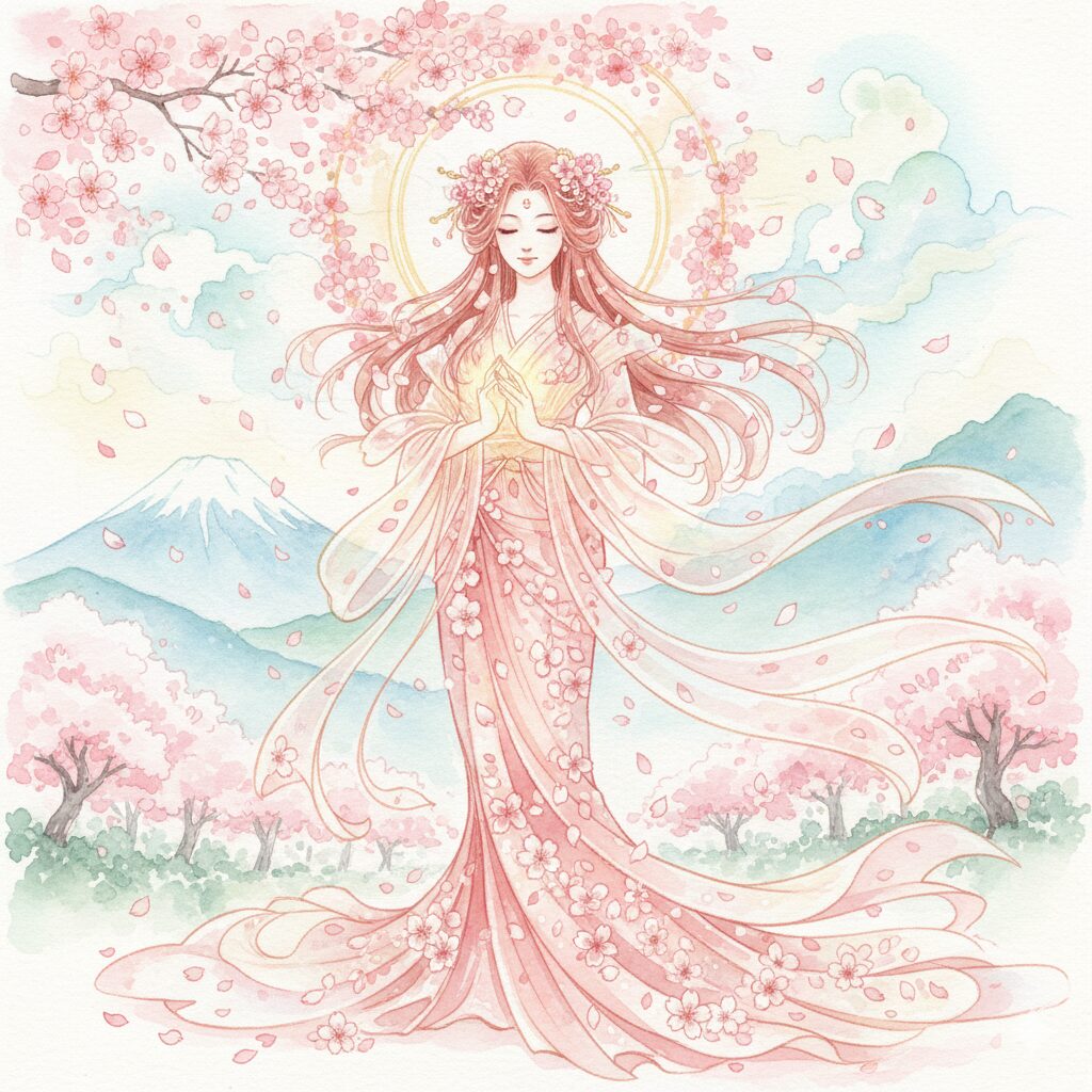 日本神話に登場する、桜の花のように美しく、そして燃えさかる炎の中でも我が子を産んだ、強く優しい女神・コノハナサクヤヒメ。